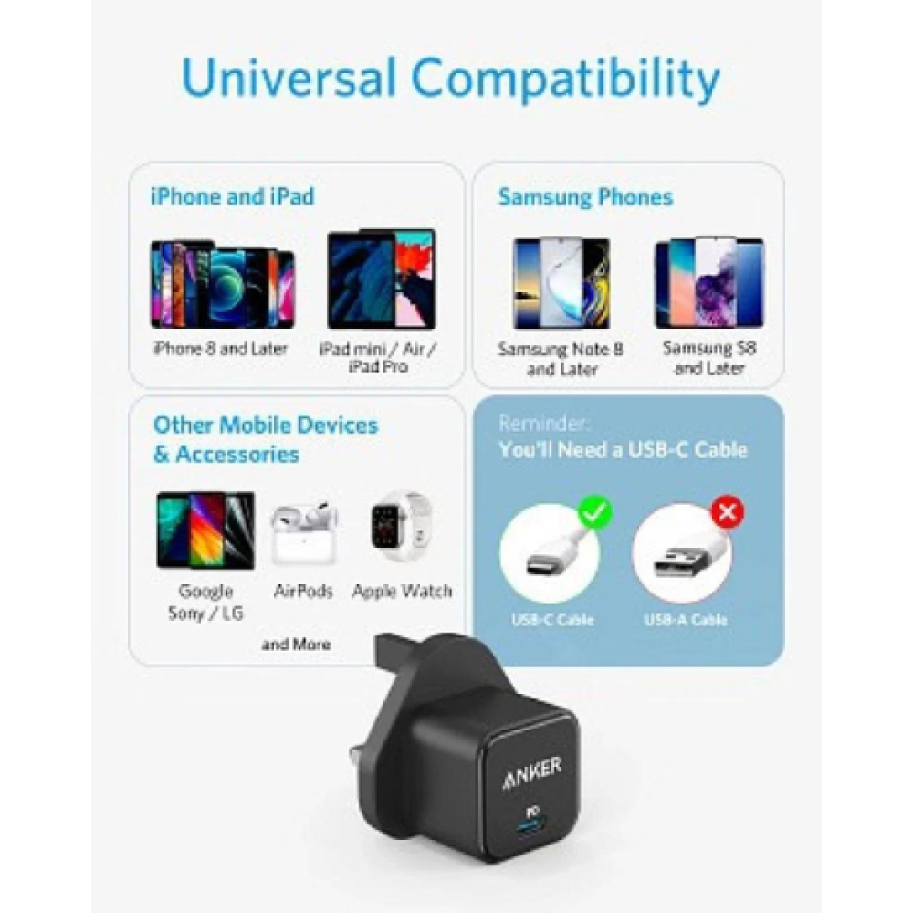استمتع بشحن سريع وآمن في جميع الأوقات مع شاحن انكر بمدخل PD بقوة 20 واط باللون الاسود، احصل عليه الآن لتجربة شحن لا مثيل لها!