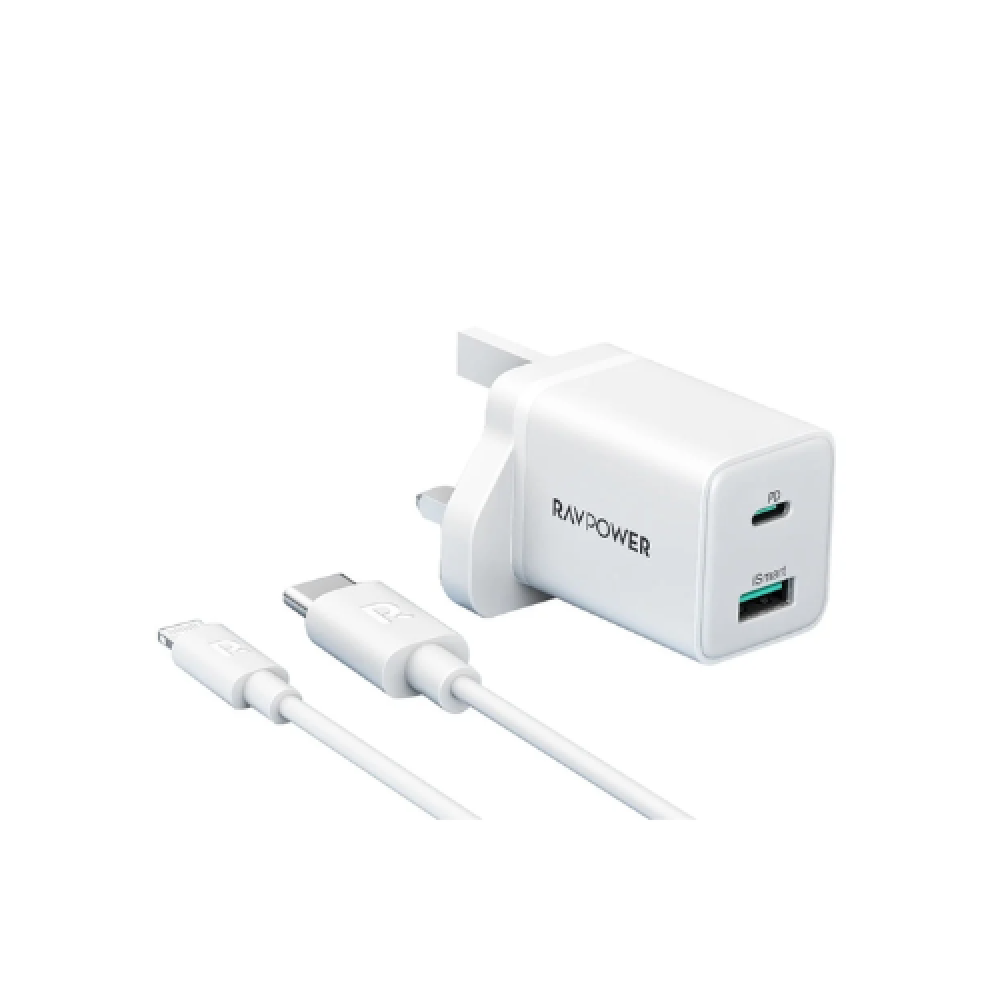 اشحن أجهزتك بسرعة وأمان مع شاحن راف باور الجداري بقدرة 20W، المزوّد بمنفذي Type-C وUSB-A لإمكانية شحن جهازين في نفس الوقت. يتميز هذا الشاحن بتقنيات حماية متقدمة ضد الشحن الزائد والتيار العالي، مما يوفر أداءً ثابتًا وآمنًا لجميع أجهزتك. يأتي مع كيبل Type-C إلى Lightning عالي الجودة بطول 1 متر لتلبية احتياجاتك اليومية من الشحن والمزامنة.
