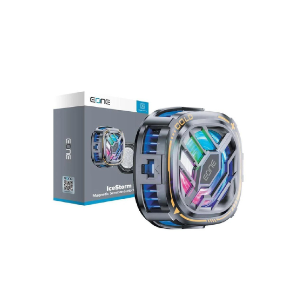 هذا المنتج هو IceStorm من علامة Eone، وهو مبرد مغناطيسي شبه موصل مخصص لتبريد الأجهزة الإلكترونية، وخاصة الهواتف الذكية. يتميز المبرد بتصميم حديث مربع الشكل مع إضاءة LED بألوان متعددة، مما يمنحه مظهرًا جذابًا وجاهزية للاستخدام مع الأجهزة المختلفة.